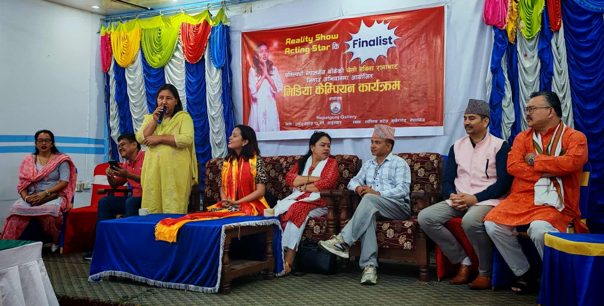 नेपालगन्ज : अभिनयमा आधारित रियालिटी शो एक्टिङ स्टार फिनालेको टप ५ मा पुगेकी नेपालगन्जकी कलाकार नवीना रानाभाटलाई गृह जिल्ला बाँकेमा राम्रो साथ मिलेको छ ।