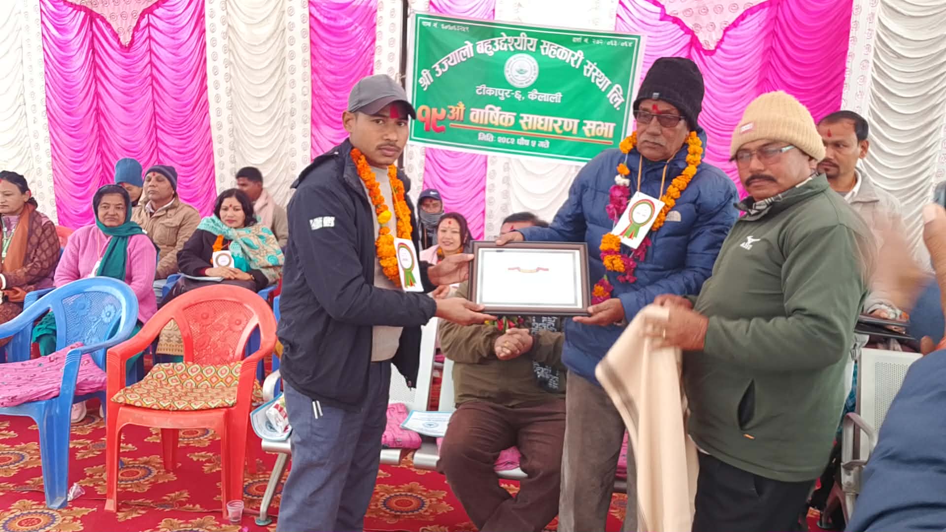वार्षिक साधारण सभाको अवसरमा सहकारीले उत्कृष्ट बचत कर्ता, उत्कृष्ट ऋणी उत्कृष्ट कृषक र धान गहुको बीउ बिक्री गरेर सहयोग गर्ने बर्दियाका एग्रोभेटका संभालकलाइ समेतलाई पनि सम्मान गरेको थियो ।