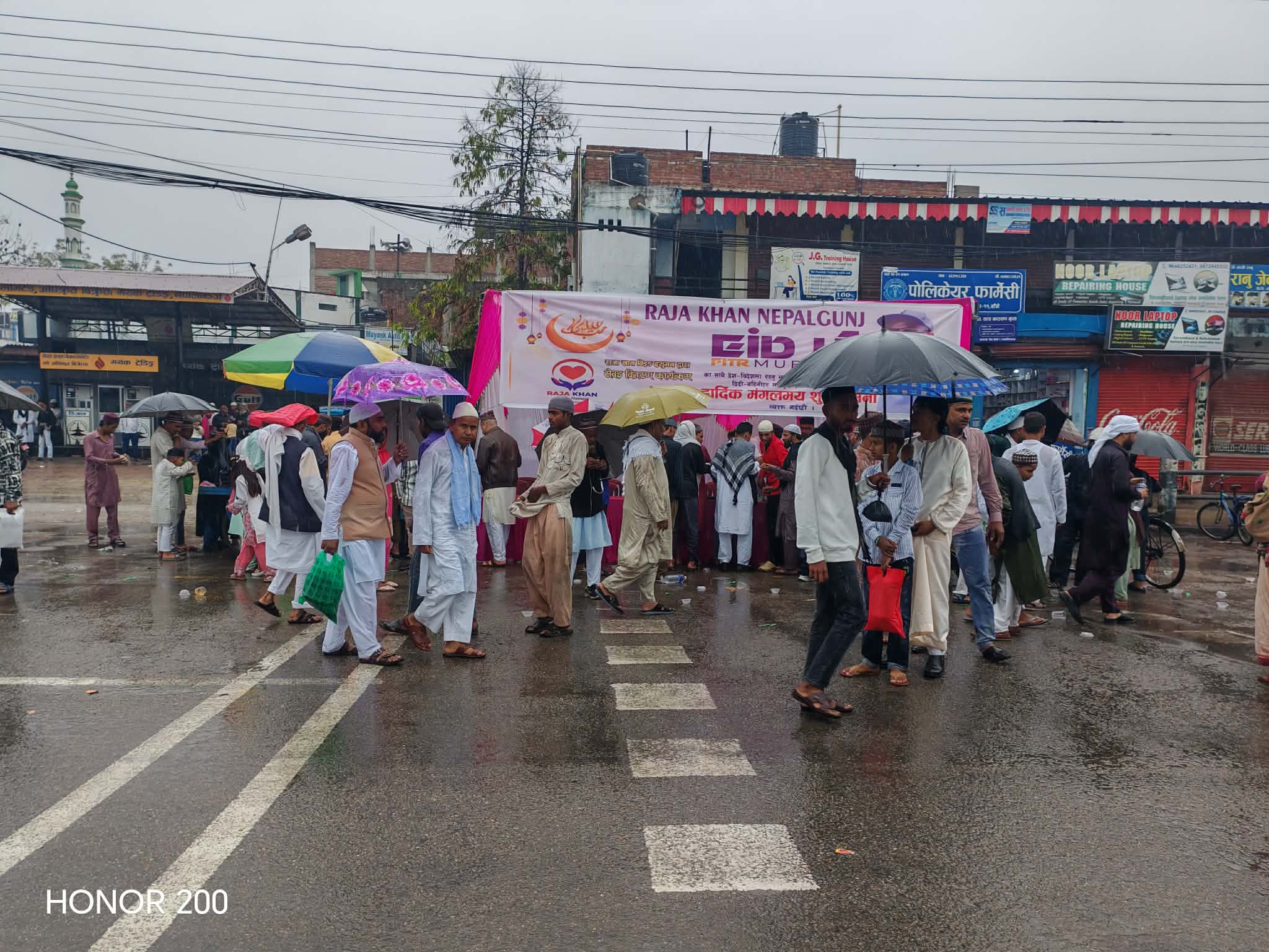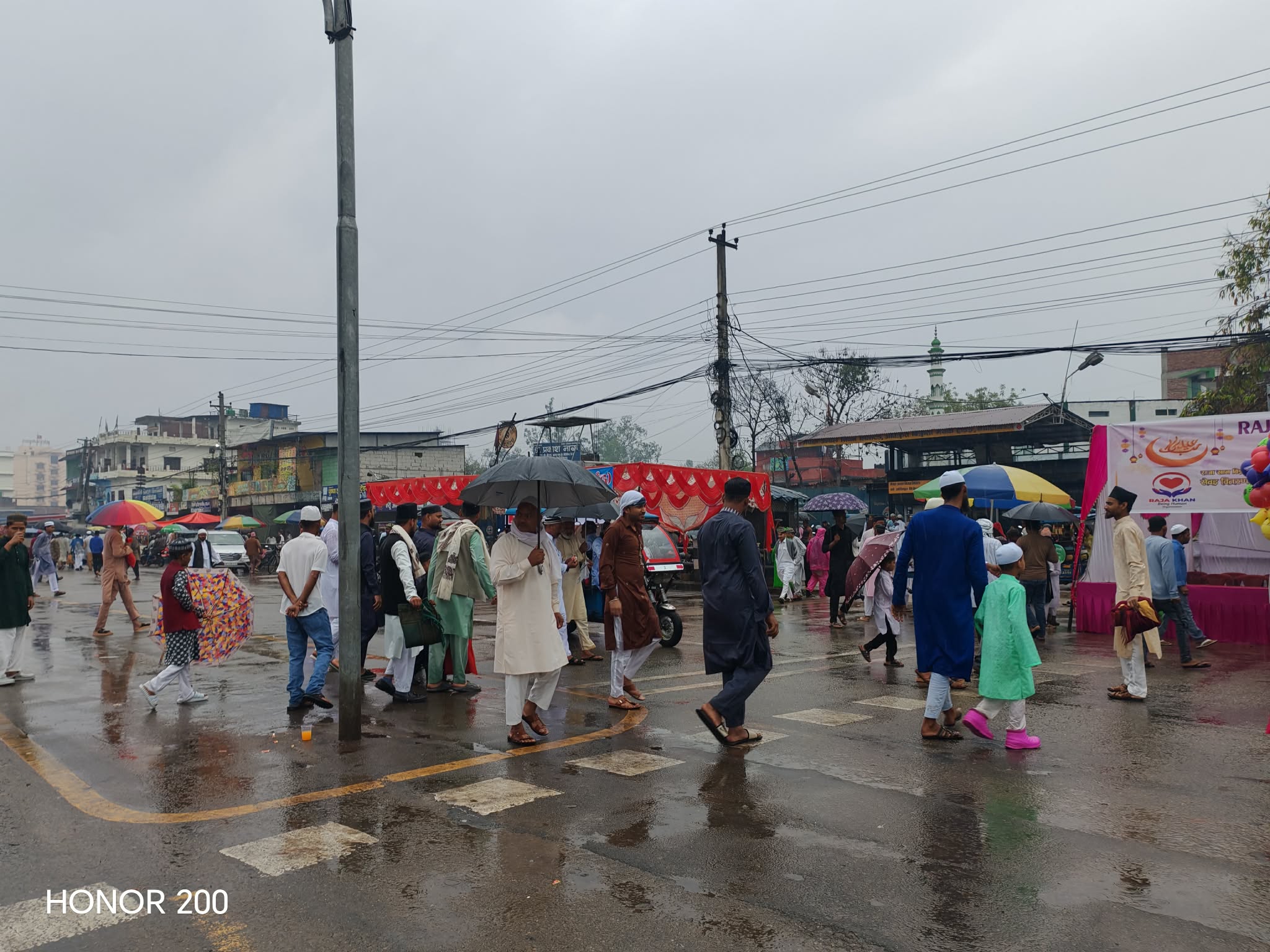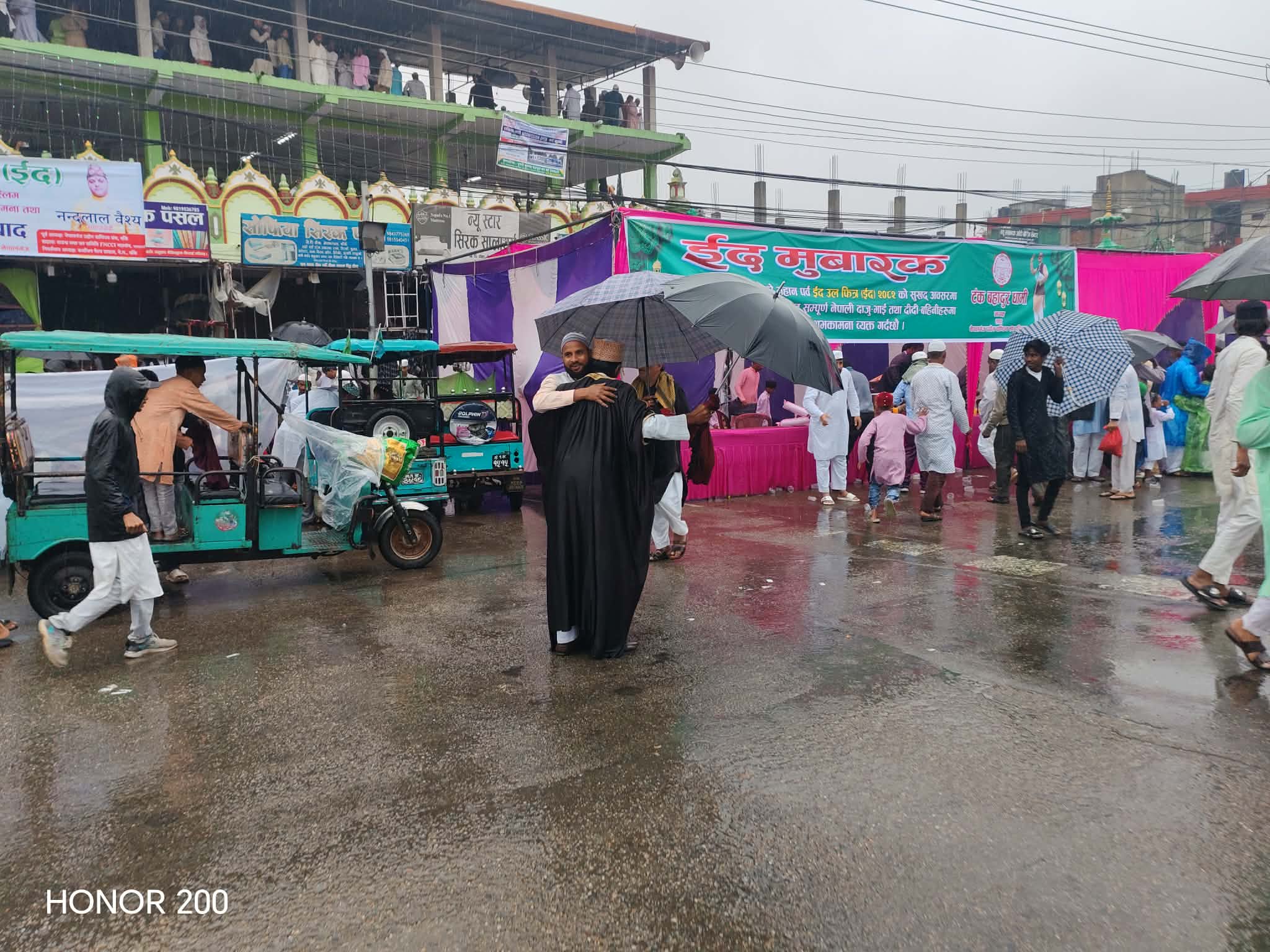 एक महिना लामो ब्रत (रोजा)पछि शनिबार बिहान नेपालगन्जमा परेको बेमौसमी झरीलाई बेवास्ता गर्दै कोही रुझ्दै त कोही ओत लाग्ने स्थान खोजेर नमाज पढिरहेको देखिन्थे ।